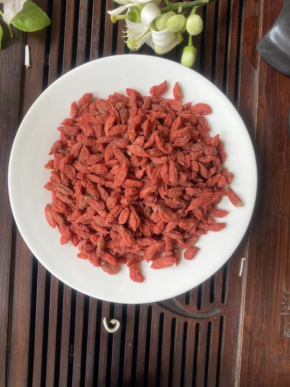 • Chuẩn bị: Kỷ tử đỏ khoảng 3-5 gram, nước đun sôi trên 90 độ, bình nước hoặc ấm pha trà.
